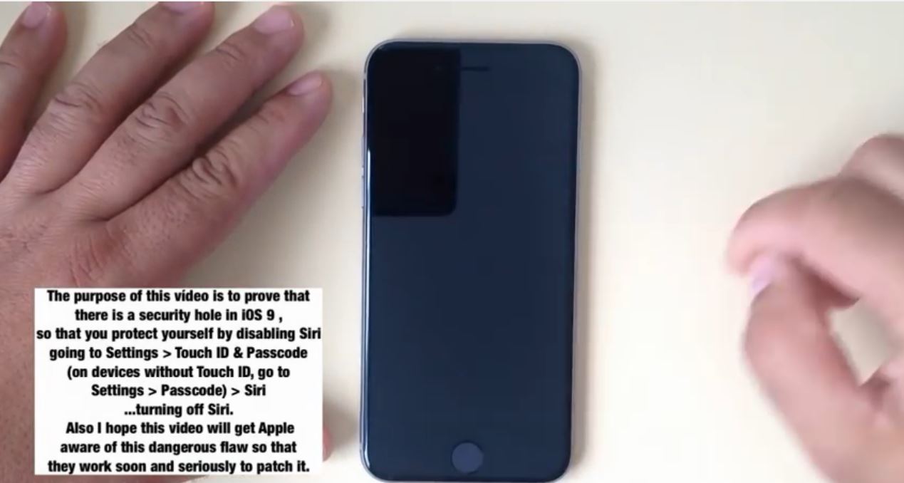 Cu toate că e foarte greu de realizat, pe iOS 9.01 este prezent în continuare un hack ce permite trecerea de lock screen fără să fie cunoscută parola. Ideea este că cel ce execută hack-ul trebuie să fie foarte rapid și să știe exact ceea ce trebuie să facă pentru a putea intra în galeria de poze, mesaje și contacte.