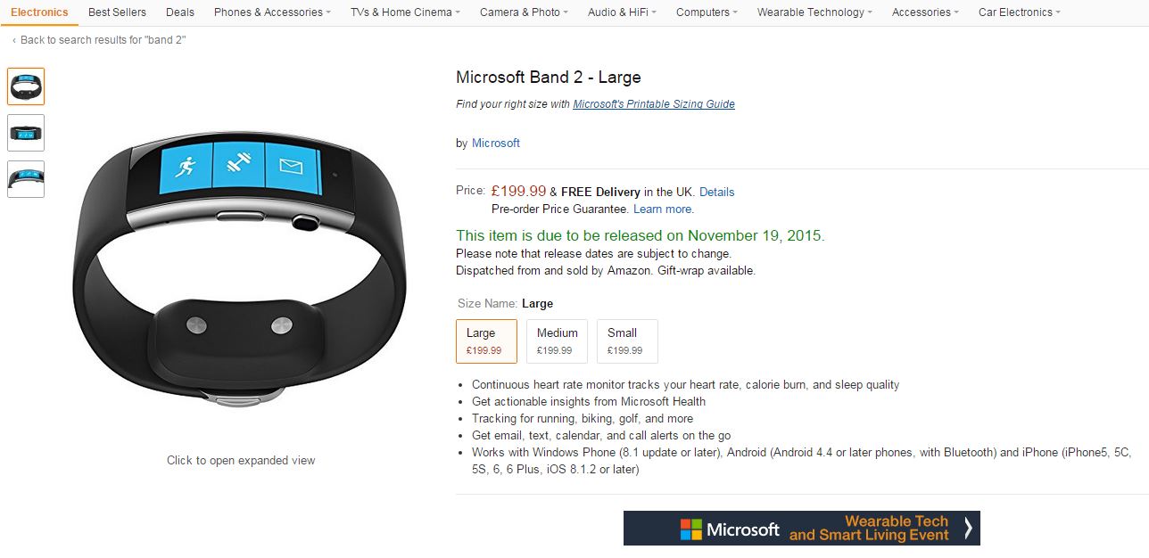 Și pentru că multe lume m-a întrebat de unde se poate comanda brățara Microsoft Band 2 ca să ajungă și în România, am un răspuns: de astăzi Amazon UK primește comenzi pentru Microsoft Band 2, pe toate cele trei dimensiuni: largă, medie, mică. Livrarea se face doar pe 19 noiembrie, deci cu trei săptămâni peste data de livrare anunțată pentru SUA.