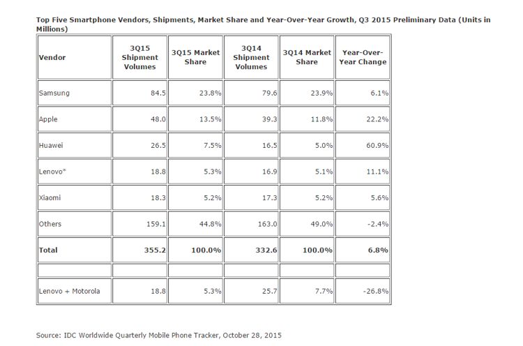 Cel puțin în ceea ce privește numărul de bucăți vândute, acolo unde coreenii stau destul de autoritari pe prima poziție a topului pe trimestrul al treilea al anului. Ceea ce este interesant în legătură cu acest clasament este că, la o distanță foarte mică de timp avem cifre asemănătoare și de la IDC și de la Strategy Analytics, lucru care pare să certfice că situația este cea reală. Așadar, Samsung a reușit să vândâ în cele trei luni de zile 82,8 milioane (84,5 milioane) de terminale, în timp ce marele rival Apple a vândut 48,4 milioane (48,0 milioane) de unități. Cifrele sunt ale Strategy Analytics, cele din paranteze le apațin celor de la IDC. Nu m-aș crampona prea mult de diferențele între cele două studii, pozițiile se păstrează și în partea mai joasă a clasamentului, acolo unde Huawei ocupă destul de autoritar în fața concurenților din spate poziția a treia, urmat de Lenovo și Xiaomi. Un Xiaomi care incă nu se poate desprinde de piața din China, motiv suficient ca explozia inițială de popularitate să se fâsâie destul de dramatic.