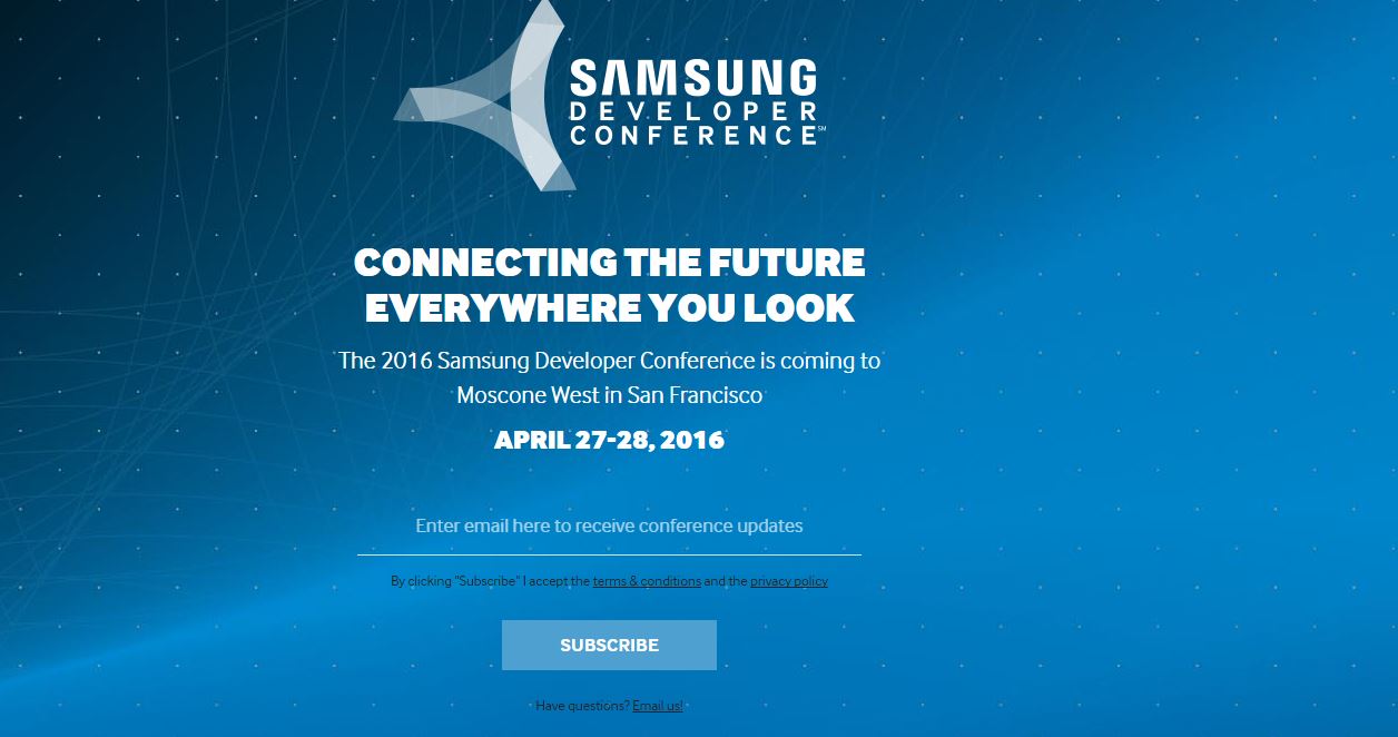 Urmând exemplul Microsoft, Apple și Google ce țin în fiecare an conferințele pentru developeri în San Francisco, la Moscone Center, Samsung a anunțat că în 2016, pe 27-28 Aprilie, va avea Samsung Developer Conference tot acolo. De obicei aceea era perioada Microsoft pentru BUILD, anul acesta locul rămând liber.