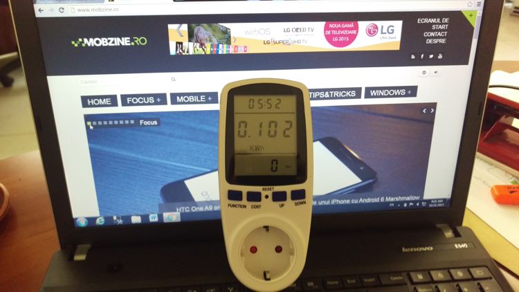 Pornit să răspund la aceste întrebări am purces la experimentul pe care vi-l supun atenției. Un scenariu identic, o zi de lucru de opt ore, același notebook, un Lenovo E540 (pe care nu îl recomand nimănui, a costat o grămadă de bani și am avut probleme mari cu el, nu mai pornea și când l-am dus în service am aflat că este o problemă cu toată seria și doar schimbatul plăcii de bază a rezolvat problema, noroc că încă era în garanție), aceleași condiții de utilizare (conectrare la net, browsing, activități office), două zile diferite. Într-una am lăsat notebook-ul conectat la încărcător încă din primul moment, în a doua am pornit cu acumulatorul la 50% și am conectat încărcătorul doar când a fost nevoie și l-am lăsat până am ajuns la încărcare 100% după care l-am deconectat din nou. Desigur, mai sunt mici variabile pe care nu am avut cum să le controlez, însă întrebarea a rămas aceeași. Se face vreo economie la consumul de curent electric?