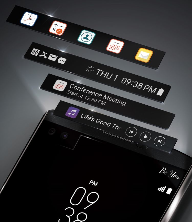 La nivel de specificații, LG V10 este o surpriză și mai mare decât ne-am fi așteptat. Deși reprezintă o idee inedită, despre care nu se știe cât de bine va fi primită de piață, coreenii au curajul să o introducă într-un terminal de top. Un display principal de 5,7 inchi QHD (1440 x 2560 pixeli, 513 ppi densitate), un al doilea ecran, de 2,1 inchi și 160 x 1040 pixeli (care păstrează o densitate peste medie, cu 513 ppi), un chipset Snapdragon 808 cu procesor hexa-core și GPU Adreno 418, o memorie RAM de 4 GB (peste ceea ce se specula), o sotcare internă de 64 GB (care se poate extinde prin microSD cu încă 2 TB!?!?!?), o cameră foto principală de 16 megapixeli și un acumulator de 3000 mAh. Plus un Android 5.1.1 Lollipop. Adăugați suportul pentru LTE, NFC-ul, dar mai ales certificarea “MIL-STD-810G Transit Drop Compliant” care ar trebui să fie citită ca o rezistență la șocuri mecanice.
