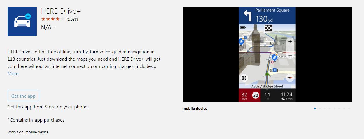 Link-ul din Windows Store ne duce încă spre Lumia Drive+, doar că nu permite instalarea aplicației pe orice aparat – doar unii utilizatori o mai pot instala pe Windows 10 Mobile.