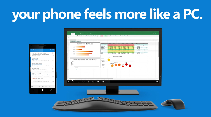 Odată cu lansarea Windows 10 Mobile Microsoft a pus în prim plan ideea de Continuum în care aplicațiile deja preinstalate pe telefon pot să funcționeze pe un ecran mai mare și în felul acesta să transforme telefonul în PC. Multora conceptul le-a sunat interesant mai ales pe task-urile de office, care ar fi adus cu adevărat valoare: de ce să mai cari după tine încă un laptop sau o tabletă dacă ai deja un telefon puternic ce îți permite să lucrezi la documentele Word, să editezi și să rulezi prezentările PowerPoint, să răspunzi la email via Outlook sau să folosești anumite funcții din Excel?