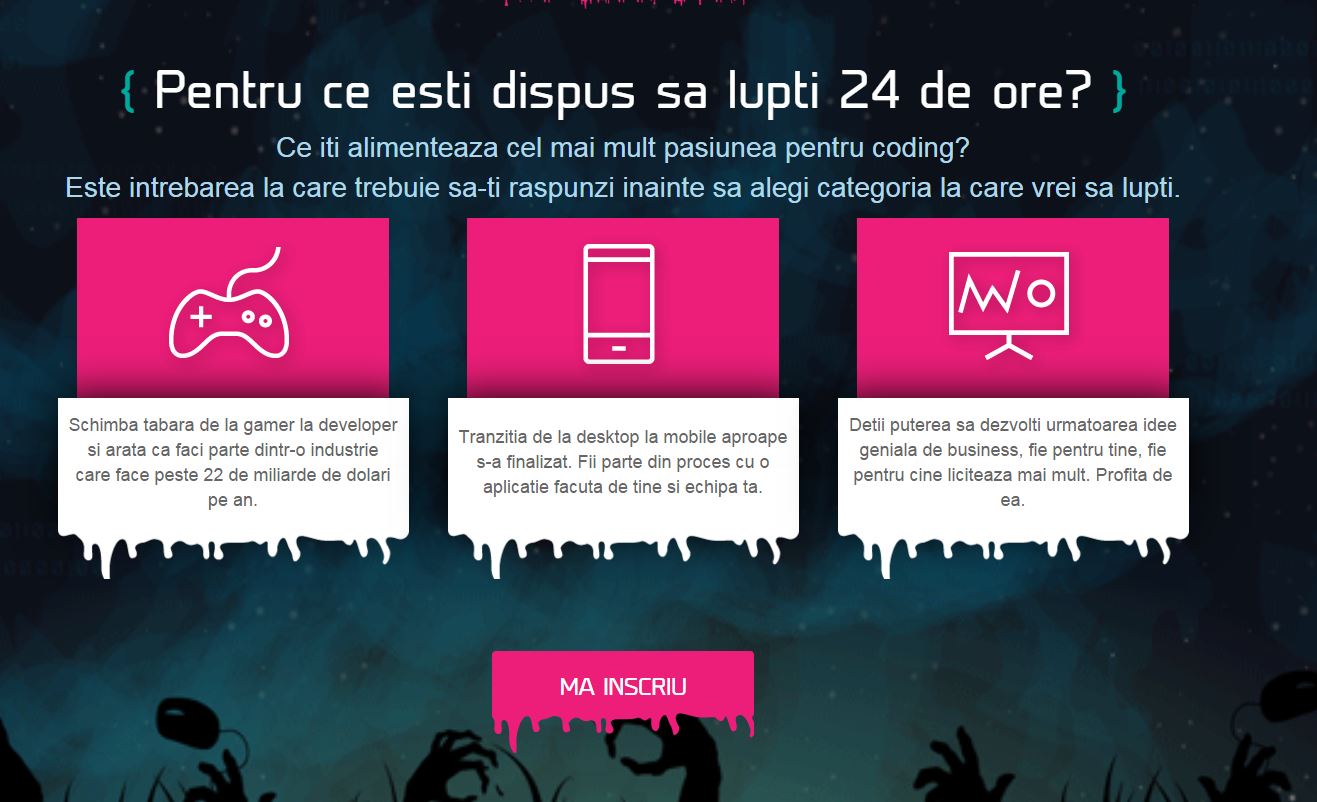 Încă se mai pot face înscrieri la #HackathonMicrosoft pentru 24 de ore de coding intens și premii super tari: laptop-uri, bean bags și internship-uri în cele mai tari companii IT din România.