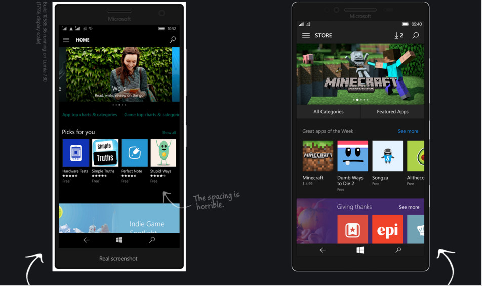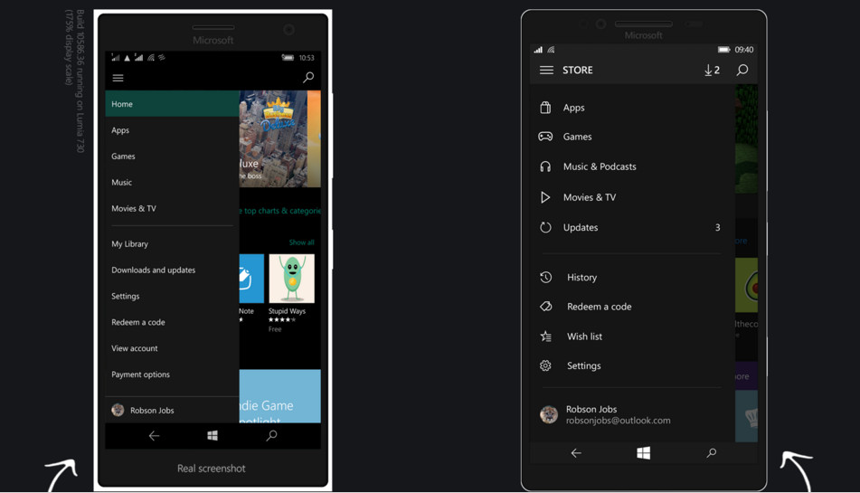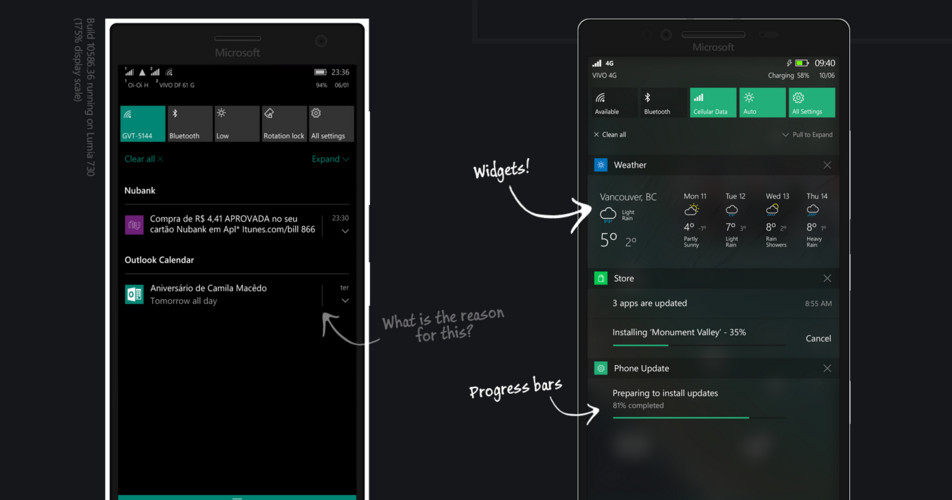 Robson Jobs explică foarte fain ce schimbări a introdus vizavi de aspectul actual al interfeței Windows 10 Mobile în mai multe dintre imaginile prin care își detaliază ideile.