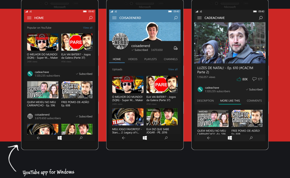 La fel și soluția YouTube pentru Windows 10 Mobile.