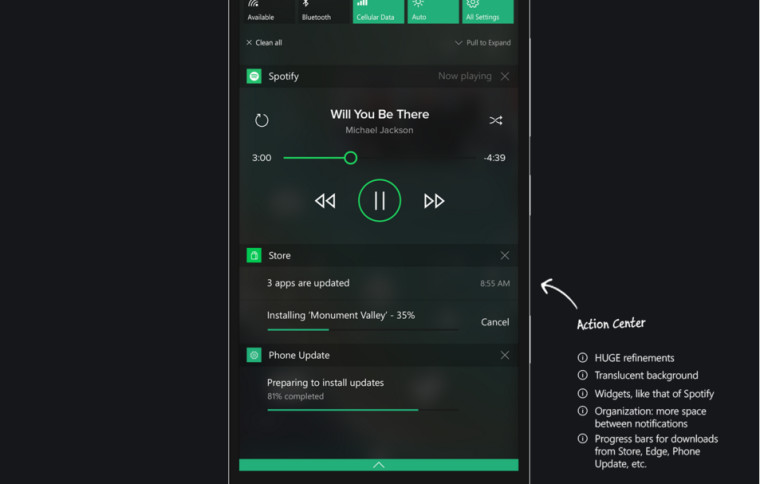 Ce îmi place cel mai mult la acest concept este faptul că niște mici tweak-uri – adică eliminarea separatorilor dintre Tile-uri și/sau zonele din Action Center, plus introducerea unui concept de design coerent.