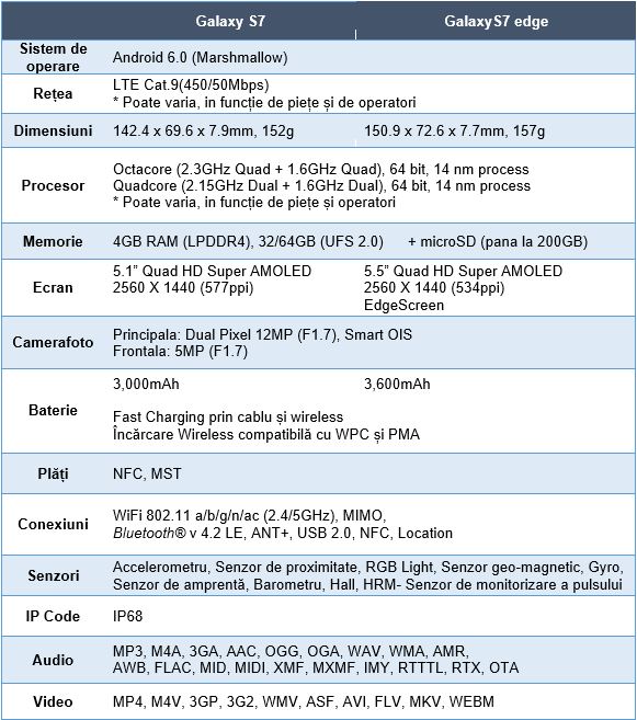 Pentru comparație consultați specificațiile tehnice de mai jos: