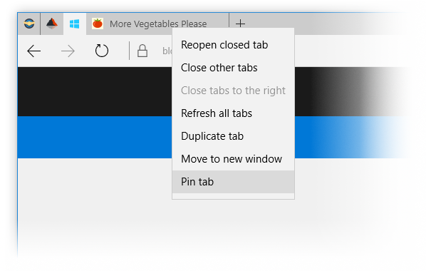 Altă chestie adusă de Windows 10 Insider Preview build 14291 este posibilitatea de a agăța (Pin) tab-urile în Edge în așa fel încât cele mai vizitate site-uri să fie accesibile instant.