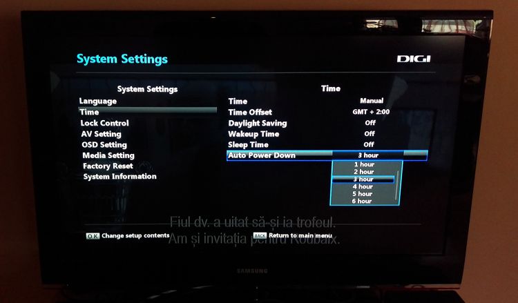 Nu este musai să opriți decodorul în momentul în care stingeți și televizorul. Este suficient să umblați puțin în setările acestuia, pentru a scăpa de această grijă pentru totdeauna și pentru a trăi cu porofelul un strop mai gros și cu sufletul mai împăcat. Durează jumătate de minut să schimbați câteva setări. Mai jos aveți setările în cazul decodorului meu Digi HD.