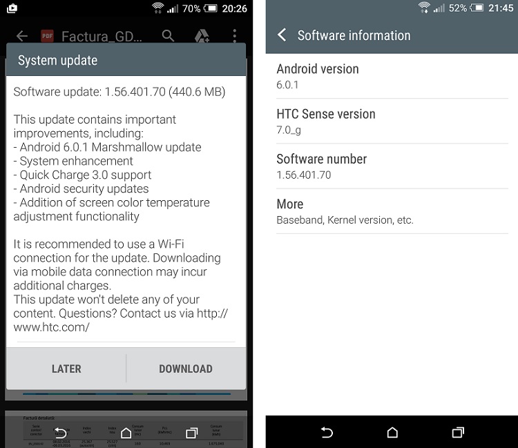 Salut! De 3 zile am primit notificarea pentru actualizarea software-ului la HTC A8 si, dupa ce se chinuie 20 min sa instaleze update-ul la Marshmallow 6.0.1, primesc mesaj ca actualizarea de sistem este corupta !!!