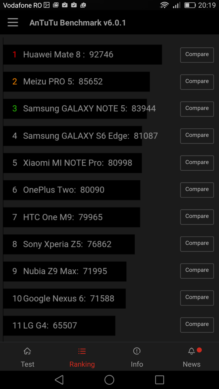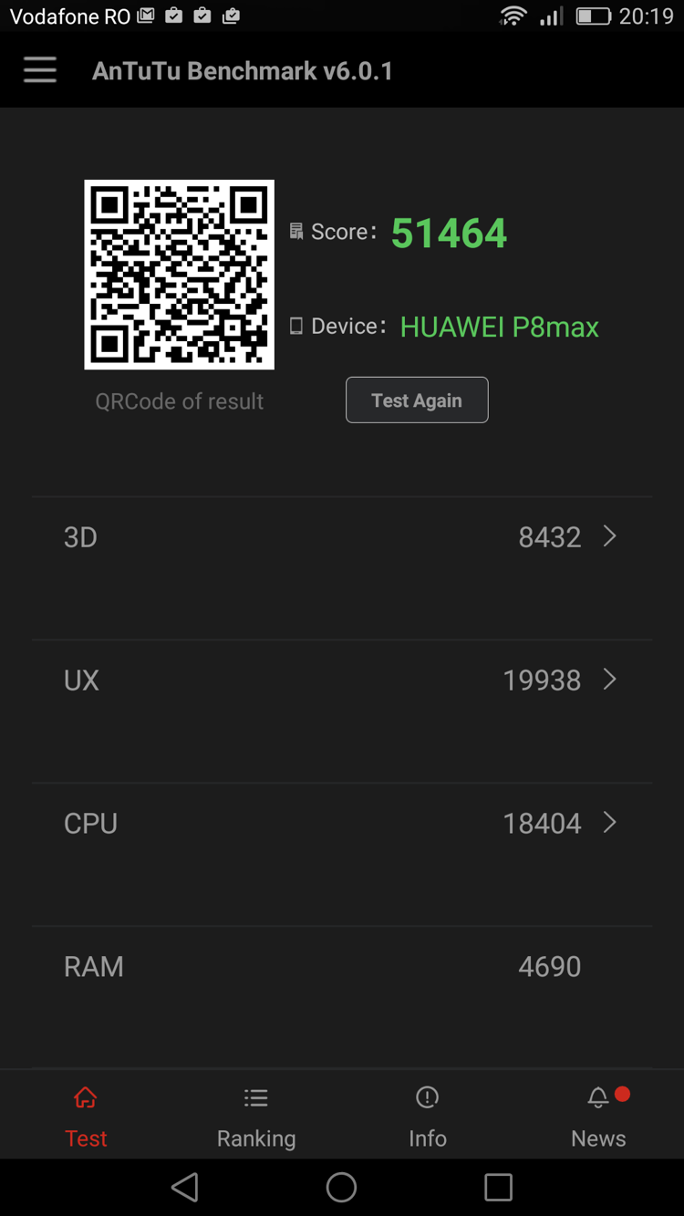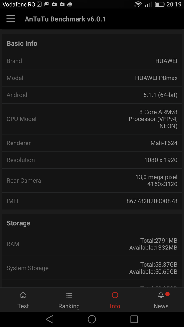 Cei care ne citesc de mai multă vreme știu că nu sunt adeptul benchmark-urilor. Însă l-am trecut pe Huawei P8max prin AnTuTu Benchmark, curios fiind cum se situează în comparație cu HTC One M9-le pe care îl utilizez în mod curent. Ce a ieșit din această experiență, vedeți mai jos.