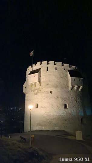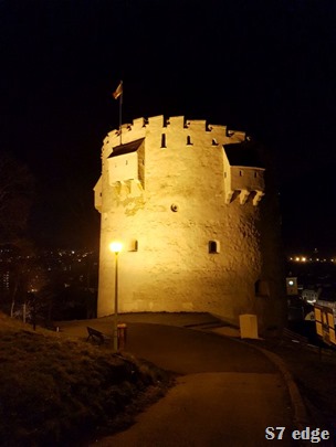 Pentru primul set de poze ne-am ales Turnul Alb din Brașov, o locație cu lumină suficientă ca să permită oricărei camere să facă poze bune. Și am făcut două rânduri de poze, primul (cel de mai jos) în care focalizarea s-a făcut pe lampa din fața turnului.