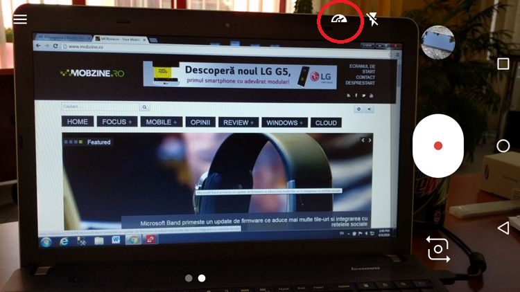 Pentru a activa modul de înregistrare slow-motion (cu încetinitorul, cum se spunea pe vremuri), trebui să intrați în modul de cameră video. În partea dreaptă sus, aveți o iconiță care seamănă cu o jumătate de ceas.