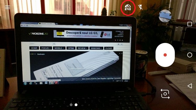 De acolo se setează înregistrarea în mod slow motion și se reglează numărul de cadre pe secundă pentru aceasta. Pentru o calitate mai bună, cel puțin în mod teoretic, se alege opțiunea cu 240 fps-uri. În momentul selecției, ecranul se va întuneca puțin. Nu este motiv de îngrijorare.