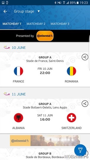 Am testat câteva și am ajuns la concluzia că aplicația oficială Euro 2016, adică UEFA EURO 2016 Official App din Play Store pare să fie cea mai potrivită alegere. Vă spun încă de la început că o să primiți mai mult decât aveți nevoie, însă merită să o puneți pe smartphone.