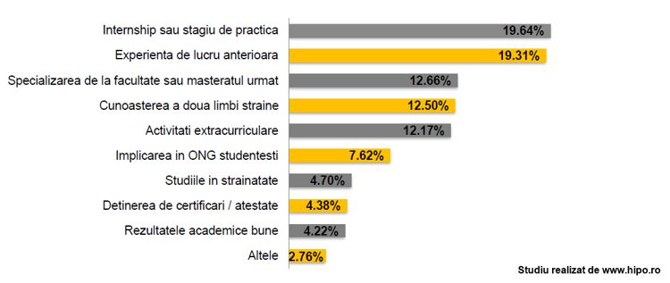 Târgul Virtual Hipo.ro pentru Absolvenți îți oferă cadrul perfect pentru ca tu să găsești jobul care ți se potrivește sau să iți îmbunătățești CV-ul cu un program fain de Internship. Companiile participante la eveniment au lansat peste 70 de astfel de programe la nivel național, remunerate, care se pot transforma într-un job full-time! Pentru aceasta, ai nevoie de un CV bine conturat, în care să evidențiezi ceea ce caută cel mai mult angajatorii la un proaspăt absolvent. Un studiu Hipo.ro ne ajută în această direcție.