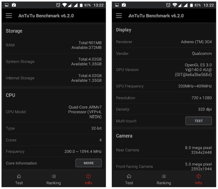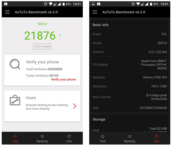 Cum era de așteptat, mai ales cu această configurație în față, performanțele aparatului sunt puternic puse sub semnul întrebării. Și da, dacă preferați varianta cu benchamark-urile, scorul scos de Alcatel POP 4 este unul destul de mic. Am rulat doar AnTuTu Benchmark, mai mult pentru doritorii de cifre și comparații; știți că eu unul nu prea sunt încântat de astfel de aplicații. Ce a ieșit, vedeți mai jos.