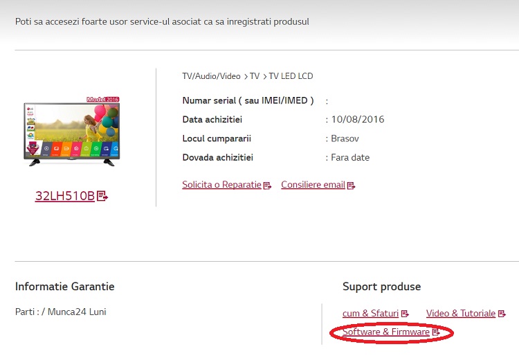 3. Se selectează produsul din seria LG Game TV înregistrat