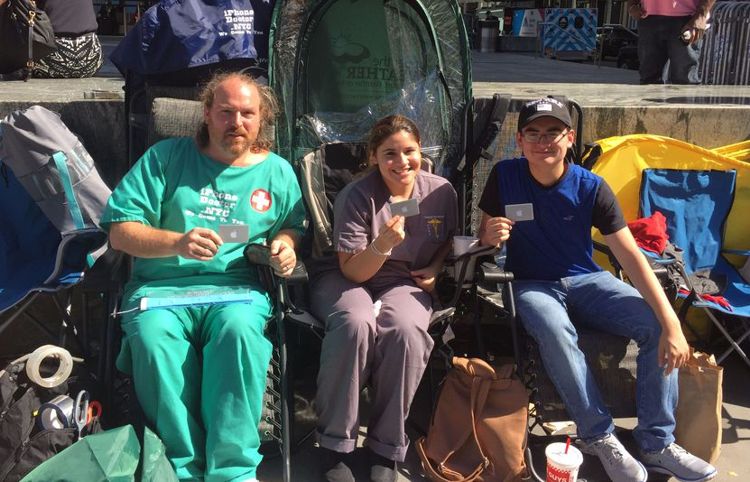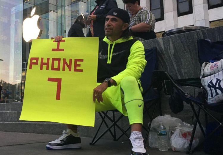 Sunt mai degrabă oameni dornici de atenție, de publicitate gratuită. Uitați-l de exemplu pe domnul din fotografia de mai sus, Jaime Gonzales, campionul absolut care a stat 23 de zile în fața magazinului Apple de pe Fifth Avenue din New York, doar pentru a fi primul cumpărător de iPhone 7 din acel Apple Store. Strălucitor (de-a dreptul strident), plin de reclame, omul cu siguranță nu a venit acolo pentru că își dorea cu ardoare ultima generație de iPhone, ci pentru că îi place expunerea, din diverse motive.