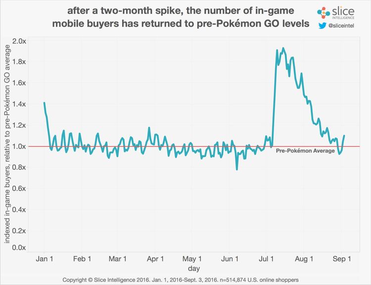 Se pare că euforia Pokemon Go apune cu viteză sporită și că acest declin, despre care am mai vorbit, întrece chiar și previziunile celor mai pesimiști analiști, oameni care au spus că acest miracol este unul pe termen scurt. Numărul utilizatorilor plătitori a scăzut pe parcursul lunii august cu 79% procente. Statistica este realizată de către Slice Intelligence pe baza de utilizatori jucători din Statele Unite, însă cred că se poate extrapola fără probleme. Iar graficul de mai jos este grăitor pentru ceea ce a însemnat Pokemon Go pentru industria de jocuri pe platforme mobile.