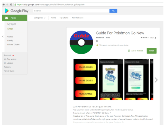 Cei de la Kaspersky Lab au descoperit o nouă aplicație de tip malware în Google Play, sub forma unui ghid pentru jucătorii de Pokemon Go. “Guide for Pokémon Go”, este o aplicație capabilă să obțină drepturi de acces pe smartphone-urile cu Android și apoi să instaleze/dezinstaleze aplicații și să afișeze publicitate nesolicitată. Chiar dacă în urma notificării Google de către Kaspersky Lab, aplicația a fost scoasă din Google Play, ea a fost totuși descărcată de peste 500.000 de ori, având cel puțin 6.000 de infectări reușite.