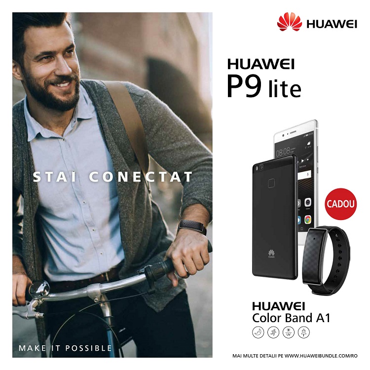 Promoția este valabilă în limita stocului disponibil la: eMAG, Altex, Flanco, Vodafone și Orange. Pachetul Huawei P9 lite + Colour Band A1 are valoarea prețului unui singur produs, și anume Huawei P9 lite, care poate varia însă în funcție de lanțul de magazine partener, dintre cele enumerate mai sus.