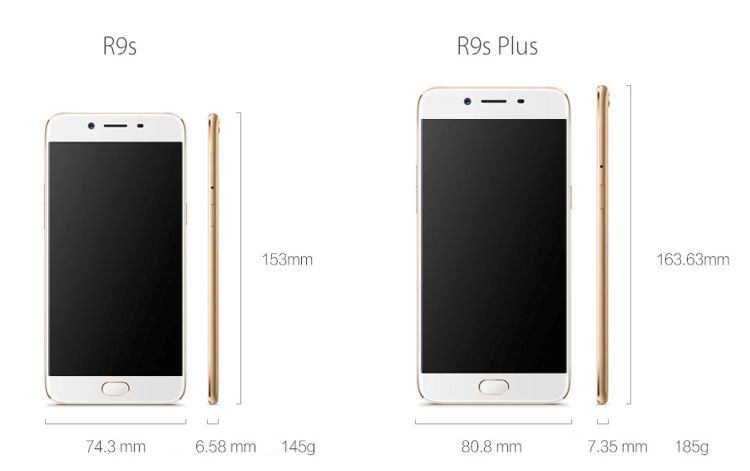 Fratele mai mare, modelul R9s Plus, duce ecranul la 6 inchi, cu aceeași rezoluție full HD (1080p). Terminalul vine și cu un chipset mai puternic, un Qualcomm Snapdragon 653 (procesor octa-core de 1,95 GHz si GPU Adreno 510) și cu o memorie RAM de 6 GB. Automat crește și capacitatea acumulatorului, care ajunge acum la 4000 mAh. Restul specificațiilor este identic cu cel de pe R9s.