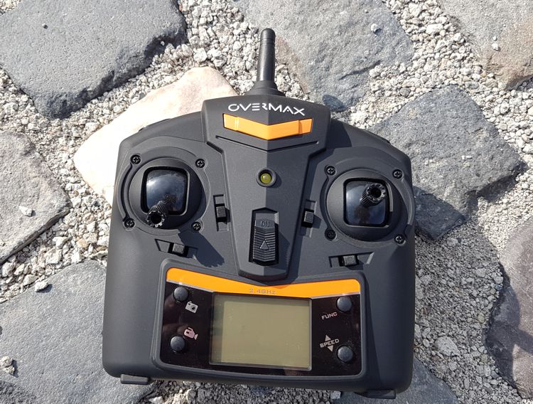 Telecomanda care însoțește drona pare a fi realizată dintr-un plastic ceva mai calitativ, care asigură un grip bun. Păstrează aceeași schemă de culori și este prevăzută cu un display digital pe care se pot urmări câteva funcții în timpul zborului. Pare puțin cam prea voluminoasă pentru butoanele pe care le are pe ea, dar te obișnuiești destul de repede cu ea.