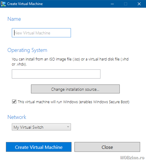 Apare opțiunea de creare rapidă a mașinilor virtuale Hyper-V.