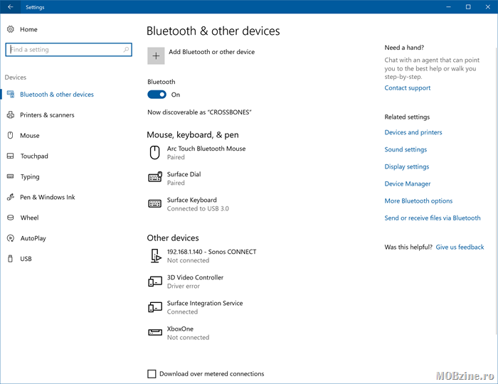Un nou meniu pentru setările Cross-Device Experiences prin care utilizatorii pot să personalizeze modul în care aplicațiile se vor extinde și vor putea fi folosite de pe un dispozitiv pe altul: