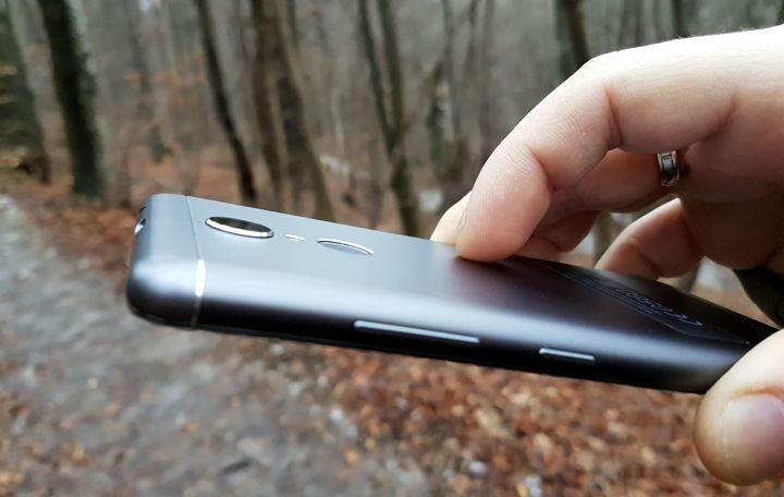 Iar ca aspect pozitiv, vine faptul că Lenovo K6 se ține chiar bine în mână. Este și meritul dimensiunilor reduse. Îmbinările sunt bine realizate și, în ciuda dimensiunilor, pare un telefon destul de solid și de rezistent.