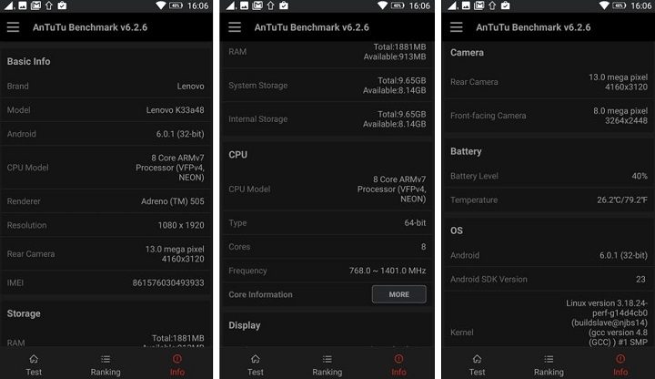 Din prima perspectivă, nu sunt foarte multe de spus. Scorul obținut în AnTuTu Benchmark este mai mic decât al competitorilor direcți, cei pe care i-am enumerat mai sus. Vă las cu capturile de ecran care vă oferă și alte detalii.