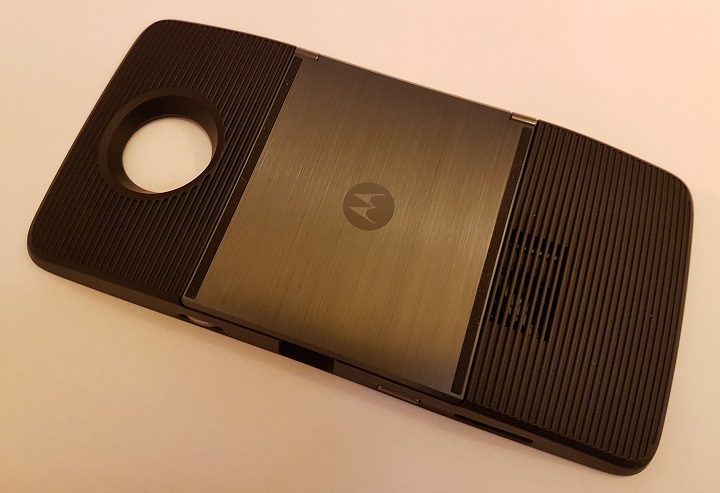 Ca o scurtă paranteză, Motorola a gândit foarte bine conceptul de modularitate și a făcut Moto Mods-urile compatibile și cu o variantă mai ieftină, mai accesibilă de smartphone, Moto Z Play. A încercat astfel să nu condiționeze utilizarea acestor Mods-uri de un telefon pe care unii utilizatori l-ar fi putut considera prea scump. În plus, ducând această filosofie și mai departe, Motorola a promis că și generația viitoare de Moto Z, indiferent de numele pe care îl va purta, va continua să fie compatibilă cu Moto Mods-urile actuale, astfel încât un fan al acestui brand să nu fie nevoit să schimbe toată seria de accesorii în momentul în care decide să își schimbe telefonul.