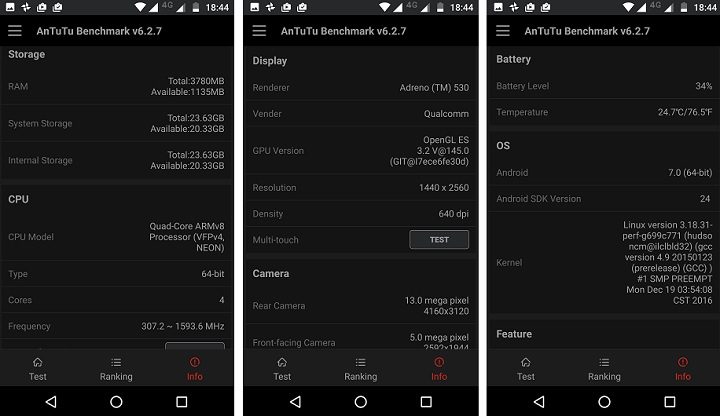 - Chipset: Qualcomm Snapdragon 820