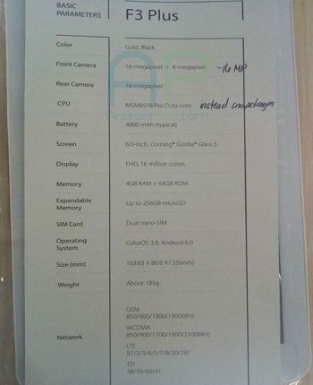Se pare că cei de la Oppo mențin focusul pe zona de fotografie atunci când vine vorba despre terminalele pe care le lansează și chiar fac pași înainte în încercarea de a răspunde provocărilor venite din partea concurenței pe această zonă. Astfel că, după ultimul calup de informații neoficiale care au ajuns în atenția presei de specialitate despre viitoarele telefoane Oppo F3 și Oppo F3 Plus, putem spune că modelul F3 Plus (căci despre el avem de această dată detalii tehnice) este cu siguranță unul dintre viitoarele așa numite selfie-exepert ale producătorului chinez. De altfel, această titulatură este asumată și în materialele oficiale care prevestesc lansarea acestor telefoane smart. Eveniment care se va întâmpla pe 23 martie.