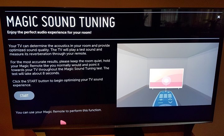 Este nevoie de o telecomandă LG Magic Remote pentru ca televizorul să determine exact poziția privitorului astfel încât să facă automat setările în funcție de aceasta. Sfatul meu este să încercați și un tuning personalizat. Dacă nu vă satisface rezultatul, puteți oricând reveni la una dintre cele patru setări predefinite (Standard, Bass Mode, Treble Mode, Flat Mode).