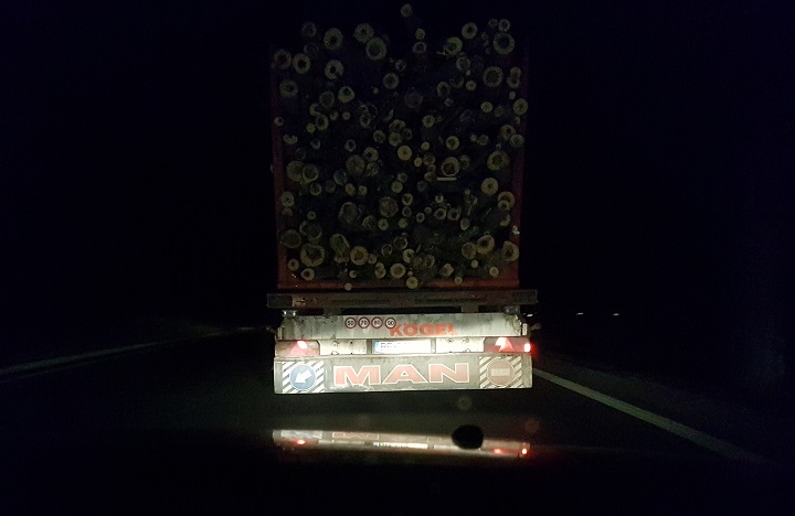 După cum se poate vedea, era o oră destul de târzie în momentul în care am ajuns în spatele unui camion plin cu lemn destul de proaspăt tăiat, motiv pentru care am decis să verificăm dacă există autorizație de transport pentru el.