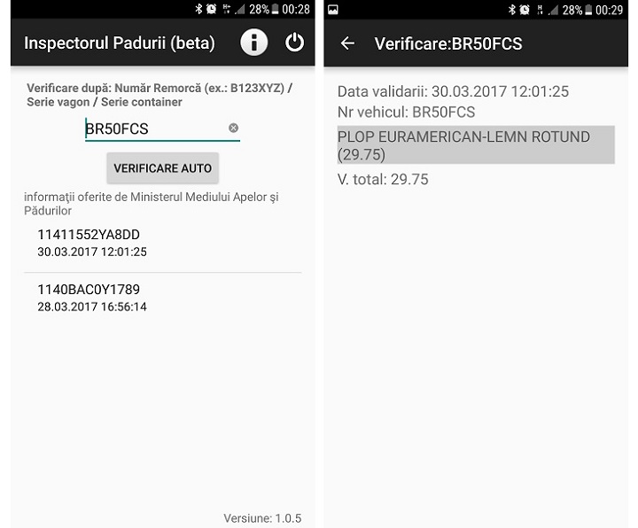 Pentru cei care nu știu, este vorba despre o aplicație de smartphone, disponibilă atât pentru utilizatorii de Android, cât și pentru cei de iOS, care permite verificarea foarte rapidă a transporturilor de masă lemnoasă, pentru a identifica urgent care dintre ele sunt ilegale și a acționa în consecință.