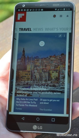 Mă refer aici la experiența de folosire a aparatului în operațiile zilnice, unde LG G6 se comportă exemplar. Interfața standard (care mie unul nu îmi place) cât și shell-ul Pixel Launcher pe care l-am folosit merg impecabil. Afișarea e lină, rapidă, aplicațiile pornesc instant, nu am avut blocări de programe sau de aparat. Recepția semnalului pe rețeaua Orange e foarte bună în Brașov (4G).