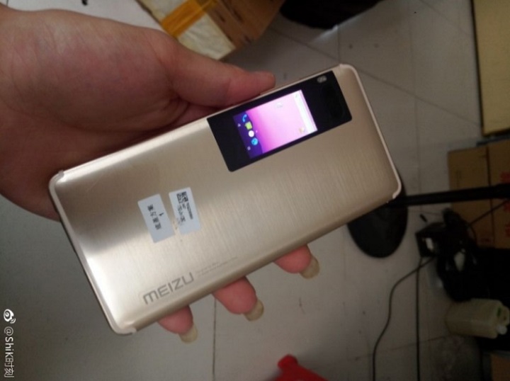 Am tot vorbit în ultima vreme despre acest terminal pentru că vrea să inoveze și propune un display secundar, mai mic (se spune că este un e-ink), plasat pe partea din spate a telefonului, pentru notificări, dar și pentru a prelungi, atunci când este nevoie, autonomia aparatului. Este o idee cel puțin îndrăzneață pe care și-au asumat-o cei de la Meizu, de aceea mulți au fost curioși să vadă cum va fi ea implementată. Până acum am avut doar fotografii generate de calculator, însă iată că acum au apărut în presa de specialitate două fotografii cu telefonul în real life.