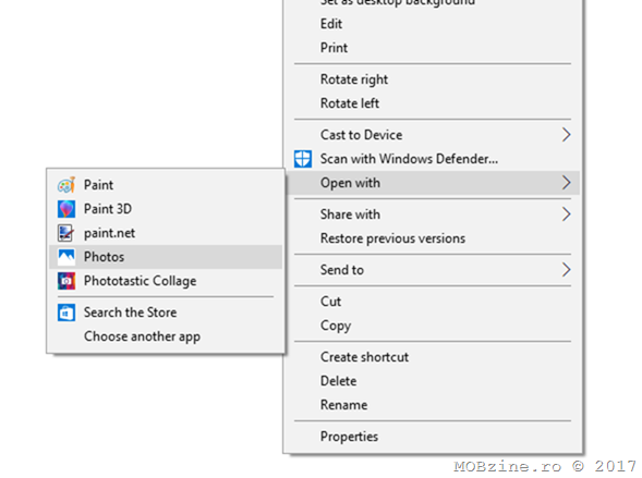 1. Copiați pe un PC cu Windows 10 Creators Update pozele pe care doriți să le îmbunătățiti. Apoi, din Windows Explorer clic dreapta pe poză și Open with / Photos.