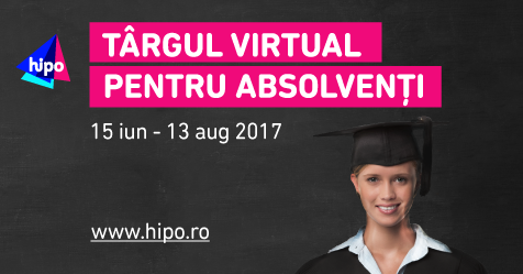 Uite un eveniment care merită din plin atenția celor aflați în căutarea unui job, care vor să interacționeze cu diferite oportunități și cu angajatorii aflați în spatele acestora fără să fie nevoie de deplasare. Un târg virtual de joburi, destinat tinerilor absolvenți, masteranzilor sau chiar studenților în ani terminali, persoanelor fără experiență, mai exact, care pune la bătaie aproximativ 600 de joburi în orașe ca București, Iași, Timisoara, Cluj-Napoca, Brașov sau chiar în străinătate (Austria). Cam acesta este, pe scurt, rezumatul a ceea ce va fi Târgul Virtual Hipo.ro pentru Absolvenți.