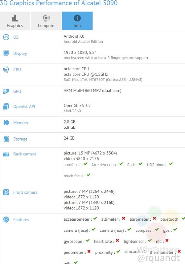 Uite că, așa cum preconizam, Alcatel nu reușește să țină secrete detaliile despre telefoanele pe care le va afișa la IFA-ul de anul acesta de la Berlin. După ce am văzut configurația completă a lui Alcatel U5 HD, telefon care a și fost listat pe site-ul Alcatel pentru o perioadă de timp, este acum rândul modelului Alcatel A7, care se pare că a trecut prin aplicațiile de benchmark, ocazie cu care și-a dezvăluit o mare parte din configurație.