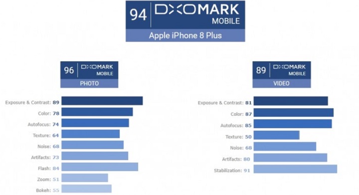Asta înseamnă că cele două terminale lansate de Apple cu câteva zile în urmă au, cel puțin în viziunea celor de la DxO Labs, cele mai bune camere foto de pe un smartphone de la ora actuală. iPhone 8 Plus a obșinut un scor de 94 de puncte, iar iPhone 8 a primit 92 de puncte. Au fost astfel detronați cei doi ocupanți ai primei poziții, HTC U11 și Google Pixel, care aveau un scor de 90 de puncte.
