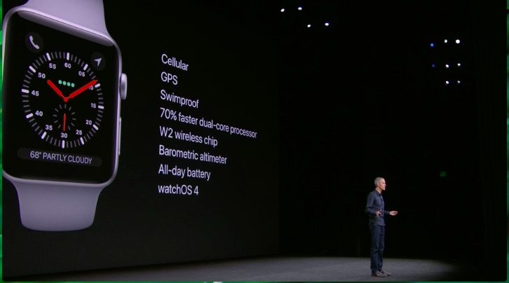 Primul produs prezentat de Apple la marele eveniment din această seară este noul ceas inteligent Apple Watch, denumit Series 3.