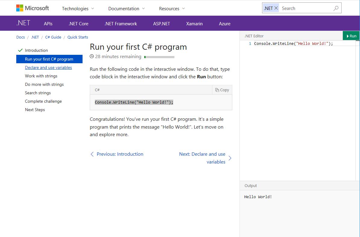 E simplu. Alocați-vă 30 de minute, porniți un browser și urmăriți sfaturile. O să vedeți cât de ușor este să vă familiarizați cu conceptele de bază din C# și .NET: declararea de variabile, folosirea șirurilor, căutarea și o mică problemă care să vă testeze cunoștințele învățate. Iar dacă vă place, atunci puteți continua explorarea cu tutorialele mai avansate de pe Channel9.