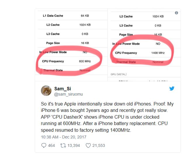 Informația e relevantă în contextul în care există mitul conform căruia atunci când se apropie lansarea unui nou iPhone/iOS Apple introduce în mod deliberat probleme de performanță pentru ca utilizatorii să facă upgrade. Acest aspect nu a fost demonstrat niciodată cu toate că degradarea de performanță era prezentă și raportată de foarte mulți utilizatori.
