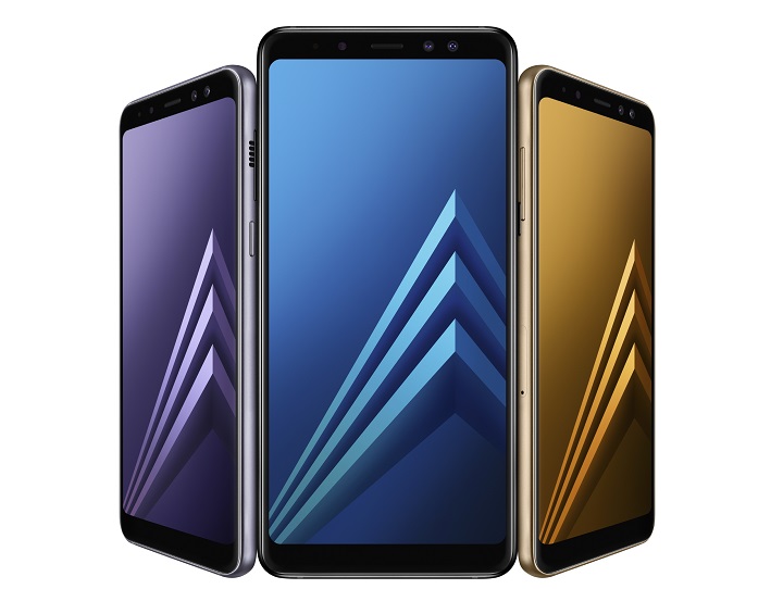 Fratele mai mare, Galaxy A8+ (2018) duce display-ul Super AMOLED la 6,0 inchi, păstrează rezoluția de 2220 x 1080 pixeli, crește acumulatorul la 3500 mAh și are două variante de memorie: una cu 4 GB de RAM și 32 GB memorie internă și una cu memorie RAM de 6 GB și capacitate internă de stocare de 64 GB.